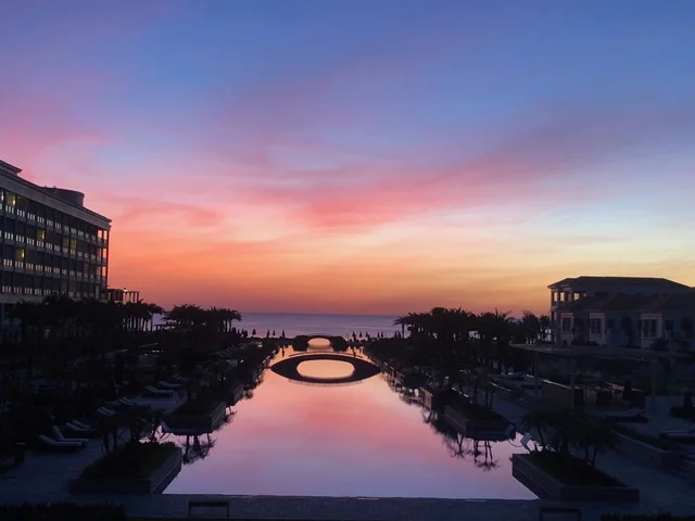 Early morning swim in the infinity pool at the resort in Da Nang, after walking 7 miles on China Beach