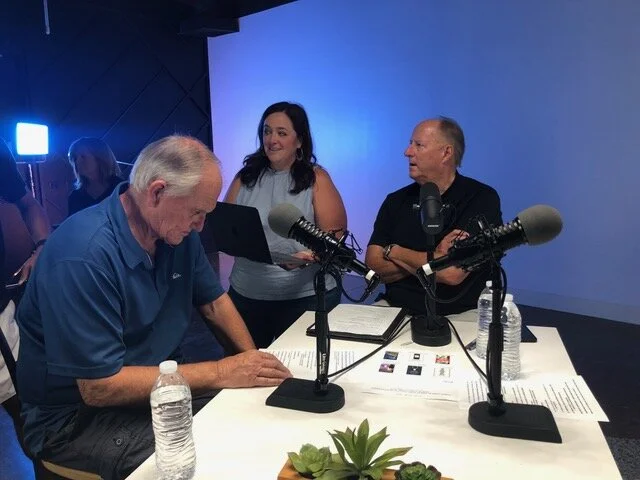 Ray and Paul (with Angie trying to get out of the photo) get ready to launch the hour-long Thrive podcast.