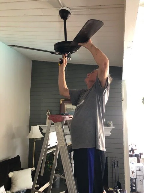 Before flying out the next afternoon, Paul finished "the Great Fan Job” for Lisa and is now able to add “Hung 7 ceiling fan/light units” to his resume. There is nothing that does this father’s heart more good than doing projects for any of his kids, but especially for his single daughter. He flew home in peace knowing that job was done.
