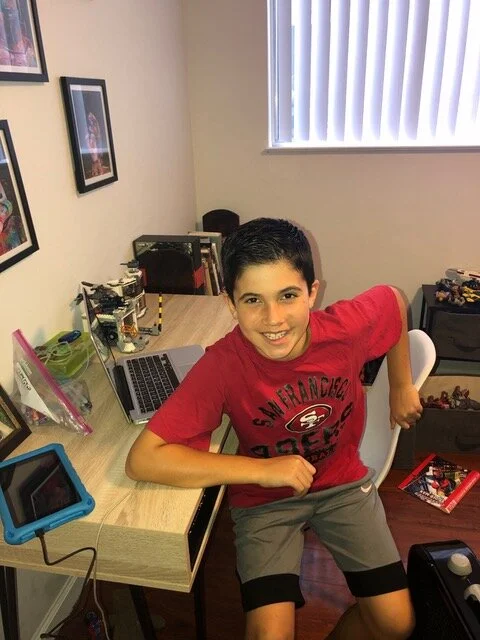 . . and Brandon at his desk in his room.