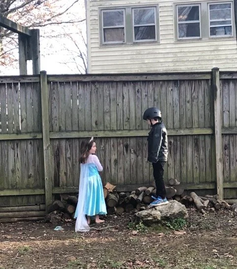 After dinner, the barefoot princess and her partner in crime strategize in the backyard.