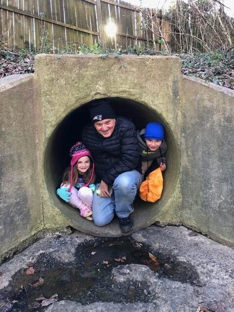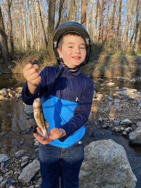 A fishing excursion to the neighborhood creek yields the biggest fish to date—who was happily released back into the frigid waters.