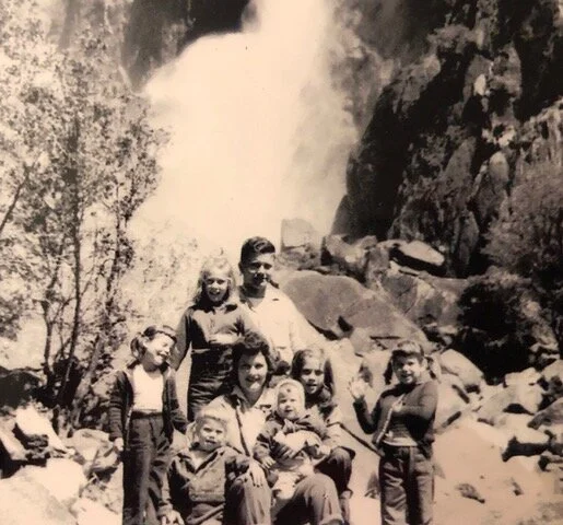 Besides the ongoing book project for H.I.M., I spent a lot of time the first week of December making a digital book of my mama’s life, which I gifted each of my six siblings with for Christmas. Photos through her 90 years of life surfaced so many sweet memories of my life and filled me with both gratitude and a shadow of sadness as we approached our first Christmas without her. Photos do paint a thousand words. This is one of my favorites: taken in 1959, pre-only-brother’s arrival, our young family poses in front of Yosemite Falls, our favorite camping destination. This reminds me of what a trooper my mom was! Camping was really not her cup of tea, and camping in a tent was even less so, never mind with six children 10 and under, but she was fully supportive of the only way this big family could afford to vacation back in those days. My father, on the other hand, loved camping and no matter what we could or couldn’t afford, this would’ve been his choice vacation. As a result of my mother’s support and my dad’s passion, we all remember with great fondness our family camping trips. And some of us have carried the tradition on.