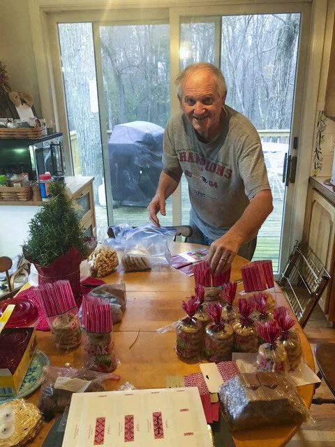 Our Patriots Couples’ Study and Women’s Study wrapped up the third week of December and we continued the tradition of gifting each of the participants with gifts bags containing Paul’s chocolate chip cookies, caramel corn, raspberry jam, bread, and cinnamon rolls. Paul delivered all of the bags and was so happy to see some of our dear friends in person for the first time this season (porch visits only). We are so thankful for those who were committed to gathering around His Word again this fall and for growth experienced by all.