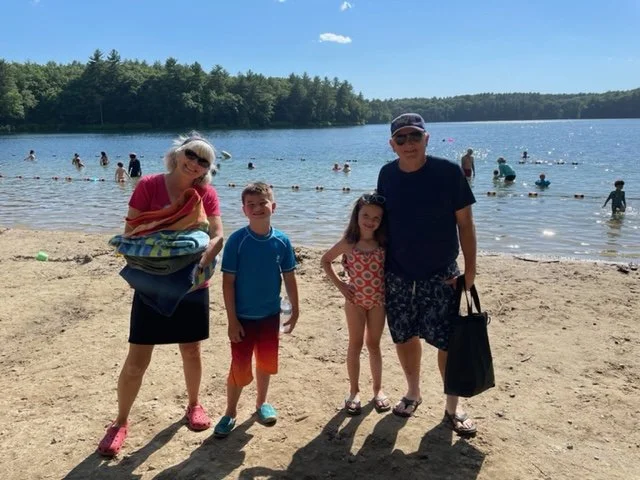 Auntie Helen and the gang at Walden Pond on a perfect day for swimming.