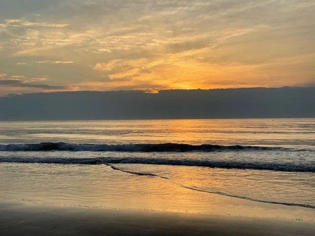 We’ve just returned from a couple of days at the beach, where we stayed in a friend’s condo. Our souls are refreshed. Early morning and late afternoon walks on the beach, quick dips in 58-degree water, tides which could be counted on to come and go on a schedule controlled by God, sunrises and sunsets… So much beauty.
