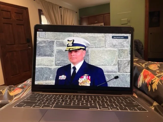 The wonders of technology: zooming in on Rob Warren’s retirement ceremony, concluding his 30 years of faithful service to our country as an officer in the US Coast Guard.