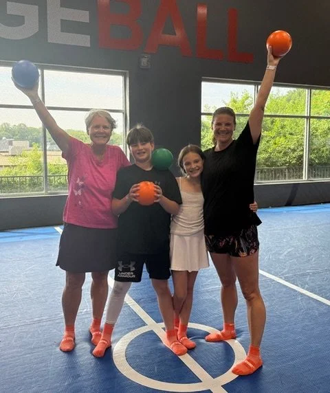 Helen observed a competitive dodge ball game at Skyzone, in which Nate took on the three ladies—and won.