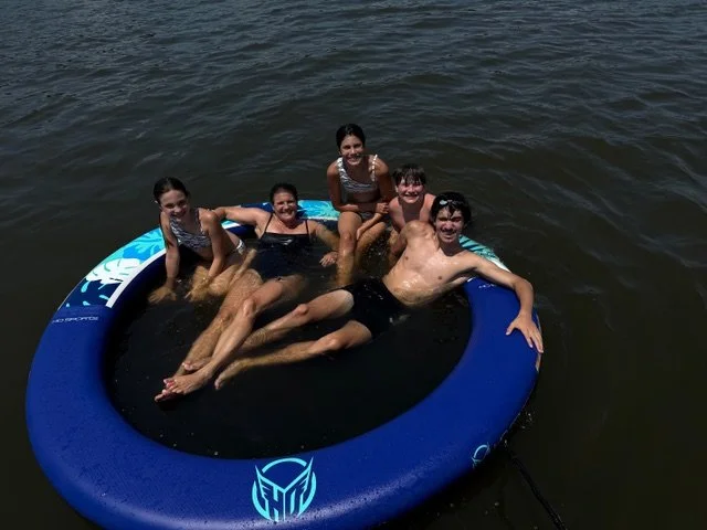 They loved jumping off the bow of the boat and hanging out on this float. The Warrens have this wired!