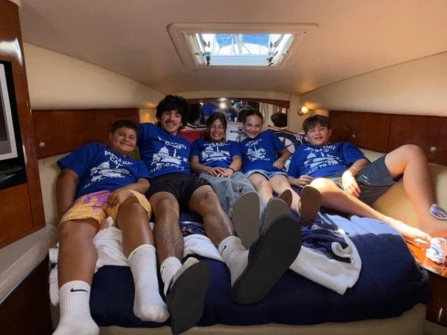 The grand finale came on Thursday when Rob and Gabby Warren took all of us out on the Chesapeake Bay in their beautiful boat. The kids were over the moon thrilled with every aspect of this adventure—from the air-conditioned, enclosed queen size bedroom to riding on the bow and jumping off the bow of the boat. They all agreed this was “the best day ever.” Rob and Gabby served us all so well and created for us a most memorable excursion.
