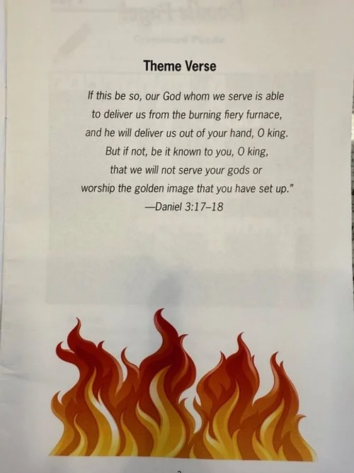 The theme for this year’s camp was “Dare to Stand,” based on the life of Daniel. Paul developed the curriculum and Barbara Steele put it together in a creative and attractive booklet, which each person received soon after arriving Saturday night.
