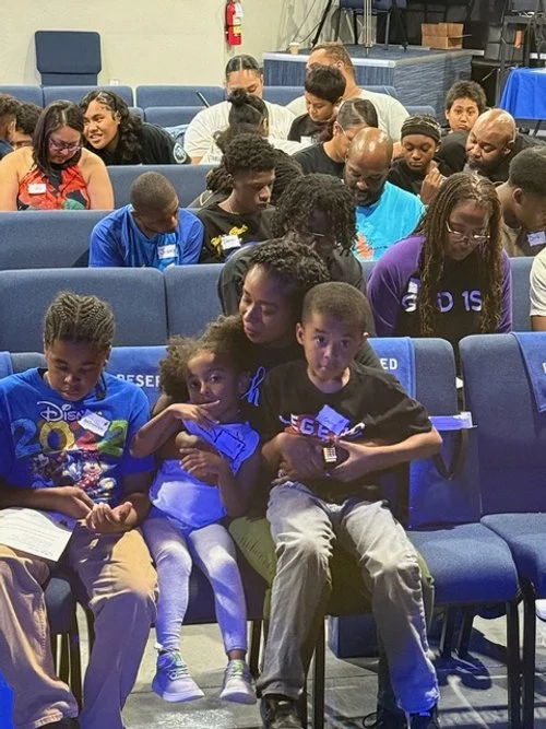 The families interacted around a passage of scripture during the all-family session and were so engaged.