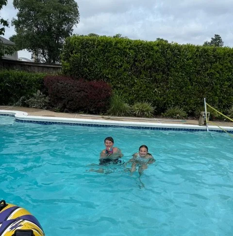 The pool is always so inviting and no-one seems to tire of the possibilities of creative fun in this welcoming “cement pond” (to quote Granny Clampett from “The Beverly Hillbillies”).