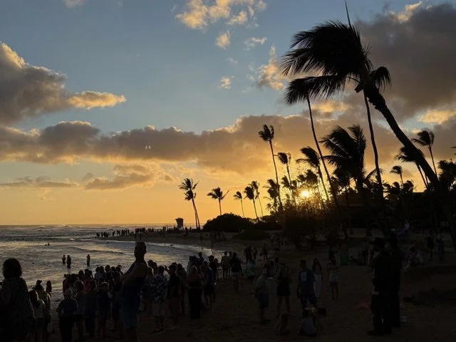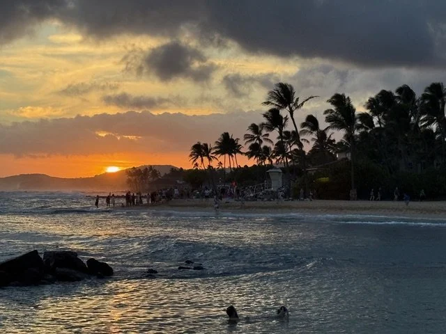 The Johnsons and Garcias flew off Kauai the next morning, Wednesday, July 30, and Lisa, Paul and I stayed until Friday. We hiked “The Sleeping Giant” on Thursday, stood on several beaches watching the crazy waves in the post-tsunami seas, swam at Kalapaki Beach, and watched sunset at Poipu Beach two nights. Such sweet times to share with Lisa before getting her on a noon flight on Friday.