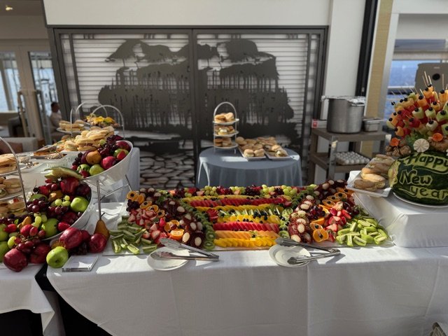 Brunch on New Year’s Day was over the top in every way. Notice the carved watermelon on the right side of the photo. Artistry!