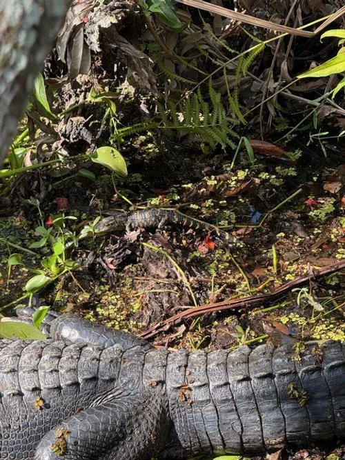 After the airboat ride, we walked through the preserve and did see this huge mama alligator with 5 babies crawling around her. You can see one of the babies towards the back middle of the photo. Very exciting!