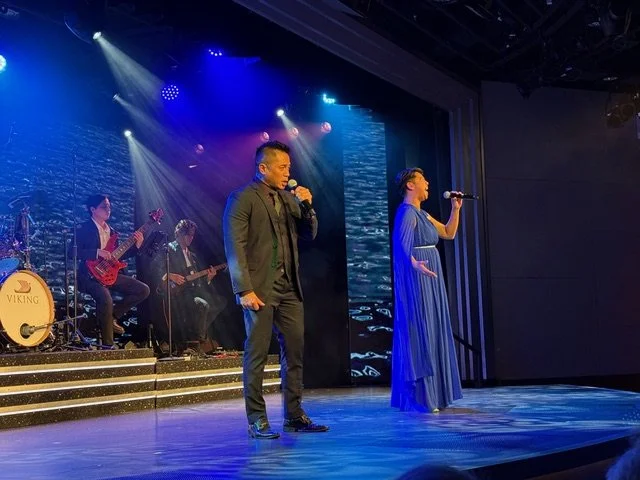 We were also surprised by the extreme talent of our cruise director, Patricia Poblador, who was not only a very competent cruise director, but also a professional musician, both vocally and instrumentally. Her sidekick, assistant cruise director Jason, was equally competent in his ship work as well as on the stage. Together they performed “The Prayer” and it was goose-bump producing.